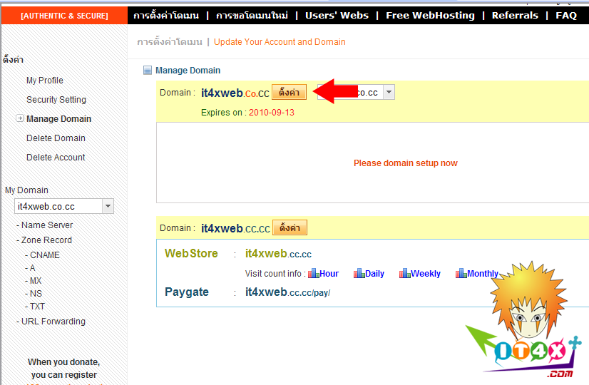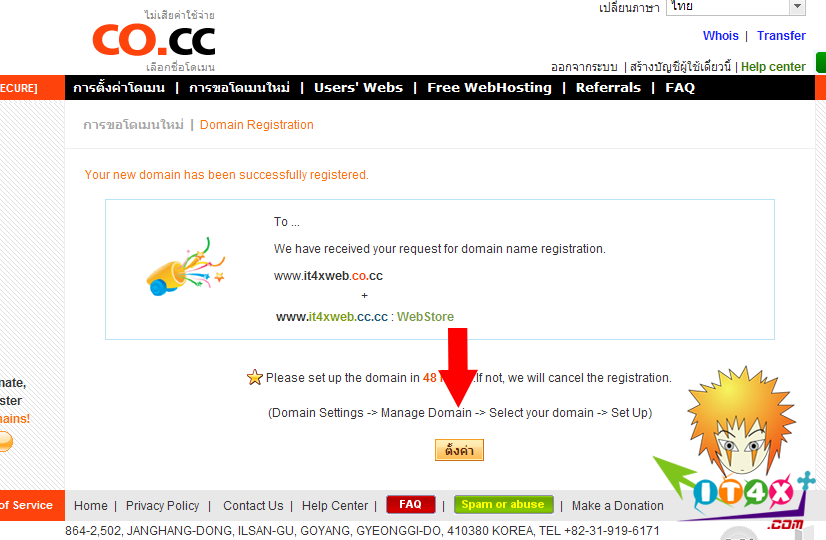 จากนั้นให้กดตั้งค่าตรง .co.cc ครับ