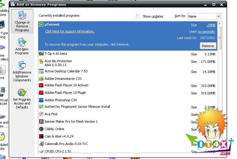 หลังจากมีการติดตั้งโปรแกรมลงไปแล้ว แน่นอน บางครั้งอาจจำเป็นต้องมีการถอดถอนออก ทั้งนี้เพื่อเป็นการเพิ่มพื้นที่ในการทำงาน หรือเพื่อติดตั้งโปรแกรมเวอร์ชั่นใหม่ๆ แทนที่ และที่สำคัญอีกอย่างหนึ่งที่พบเห็นกับผู้ใช้งานอินเตอร์เน็ตก็คือ จะมีโปรแกรมแปลกๆ ติดตั้งเข้ามาในคอมพิวเตอร์ของเรา ซึ่งหลายๆ ครั้งเกิดขึ้นโดยที่เราไม่ได้ตั้งใจก็เป็นได้..