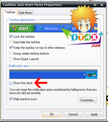 ทิป เทคนิค คอมพิวเตอร์ มาซ่อนนาฬิกาที่ Taskbar กันดีกว่า (ซ่อนไปทำไม -*-) Moshi 16,996 โพสต์ · สมาชิกตั้งแต่ 4 กรกฎาคม 2552 📅 26 กรกฎาคม 2552 เวลา 19:44 น. 👁 6,260 ครั้ง · 💬 0 ตอบ คุณสามารถปิดนาฬิกาที่ Taskbar ได้ โดยคลิกขวาที่ Task bar > Properties > เอาเครื่องหมาย Show Clock ออก ;D Credit : www.it4x.com